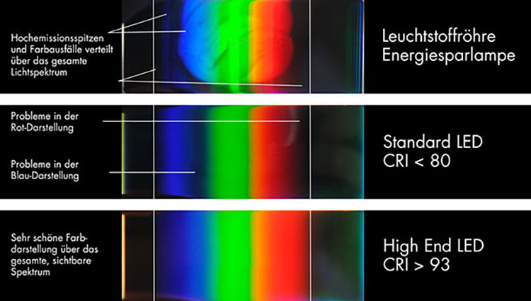 Gutes Licht, mit einer hohen Lichtqualität, macht das gesamte Farbspektrum sichtbar. Die Farben erscheinen so natürlich wie bei Tageslicht.