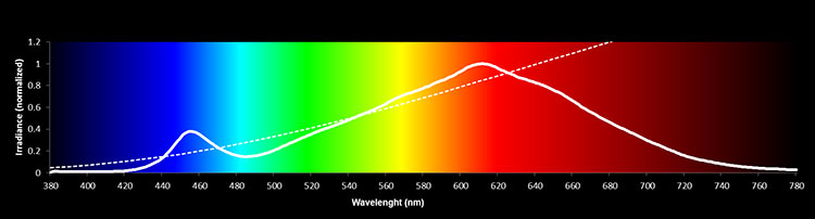 Lichtqualität ist messbar. Sie wird als Farbwiedergabe-Index bezeichnet, kurz CRI oder Ra. Der CRI Wert orientiert sich am Sonnenlicht. Das Spektrum des Sonnenlichts beinhaltet alle Lichtfarben, es hat einen CRI von 100.